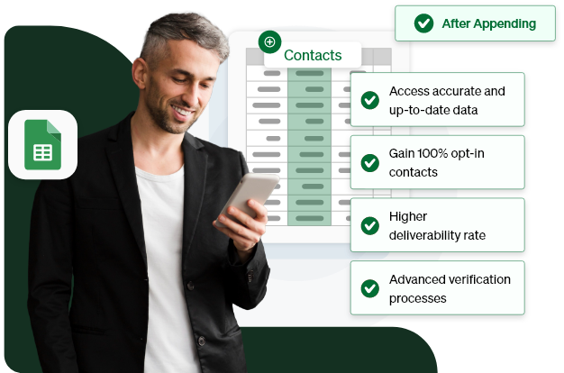 Our data expert team ensures to use advanced techniques to append your database thoroughly and deliver error-free contact data. We fill every gap in your database and help you connect with new potential clients. So, what are you still thinking? Try out our contact appending services now and achieve the highest sales rate in no time!
